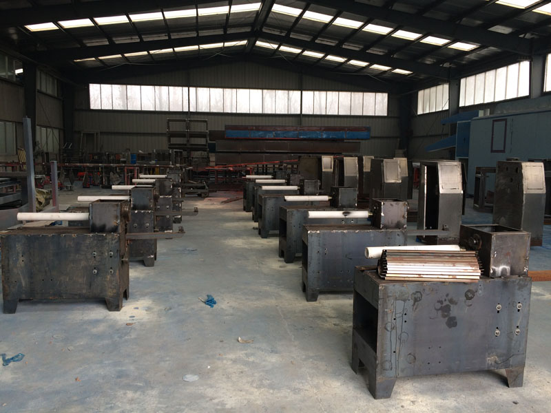 電加熱,風(fēng)箱采用前后兩段電加熱,溫控表控制溫度,烘箱用水加熱,烘箱內(nèi)箱采用3mm的鋼板,外箱1mm鍍鋅鐵皮,機架烘箱噴乳白色,兩側(cè)門子噴綠色