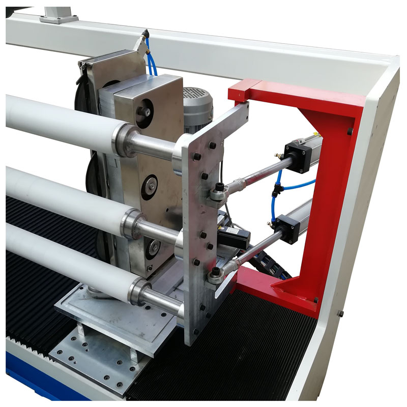 2. 電機(jī)控制系統(tǒng)為PLC可程式控制器,同軸中可設(shè)定多種尺寸,電腦于切割時自動調(diào)整切割寬度